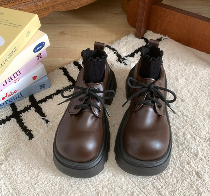 The upper material is leather.Get rid of the unchanging sweet style and try the handsome boy style with a neutral style and soft and comfortable PU fabric. The front and rear contrasting color splicing creates a modern feel, with a post-modern and futuristic sole design, a classic lace up that is gentle and elegant, and a mix of street style and yuppie style.