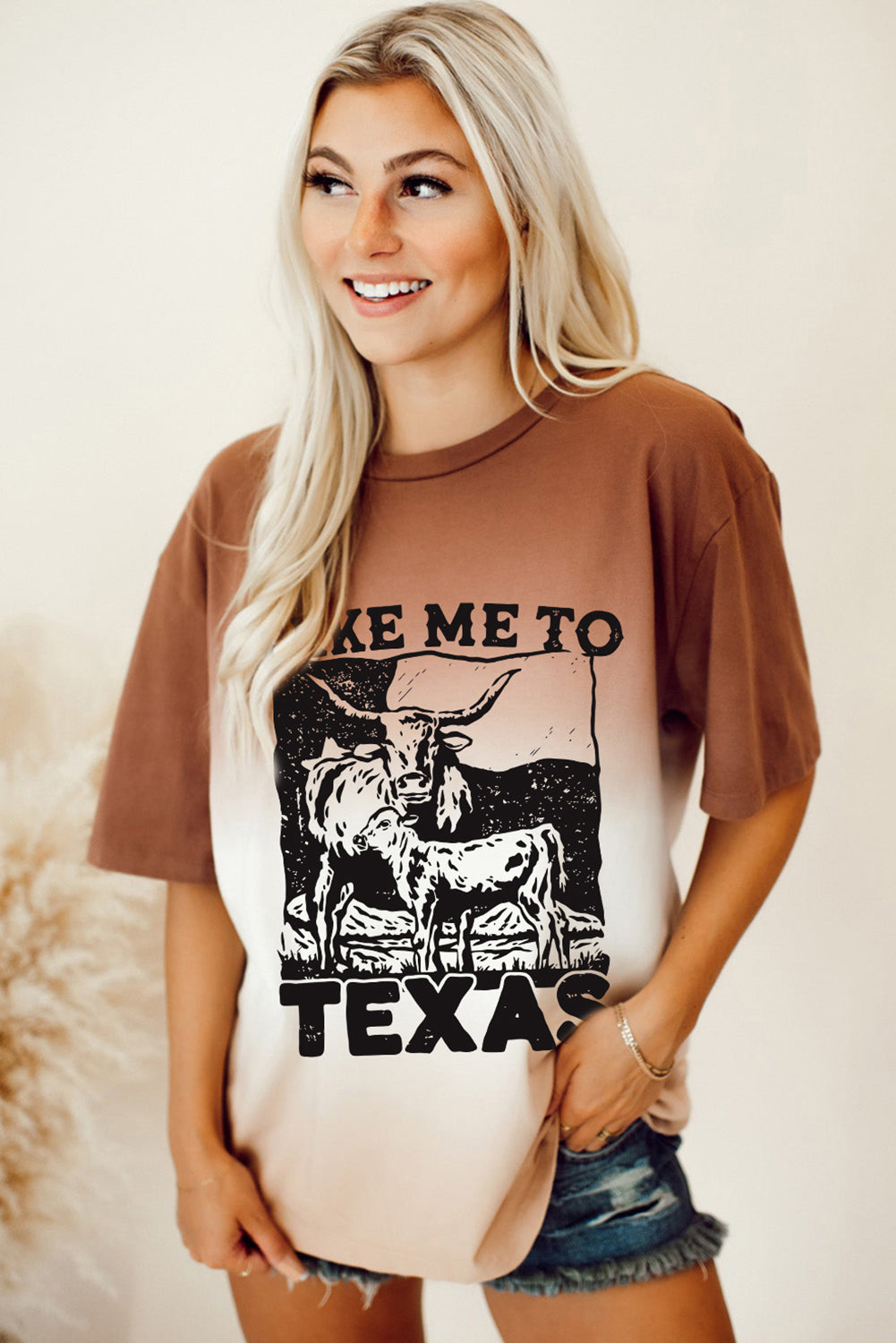 Brown TAKE ME TO TEXAS Cow Gradient Color Graphic Tee