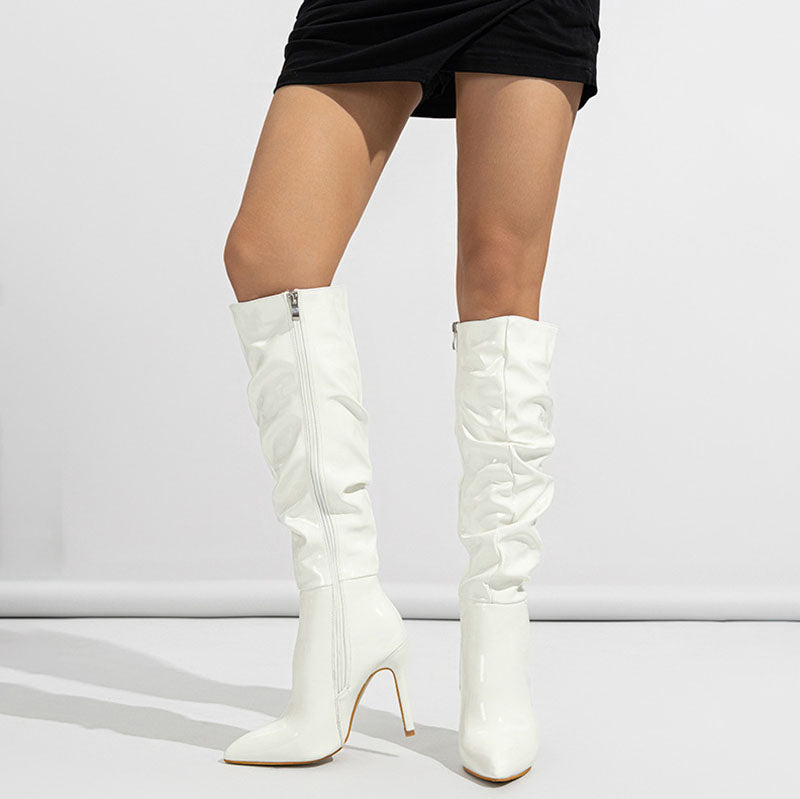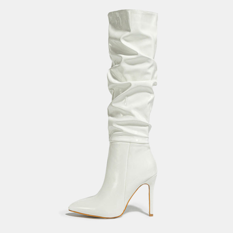 The Erica Glossy Ruched Boots offer a cool style for fashion-forward looks. The glossy finish and ruched pattern combine for a sophisticated yet eye-catching style. Be sure to complete your look with these stylish boots.