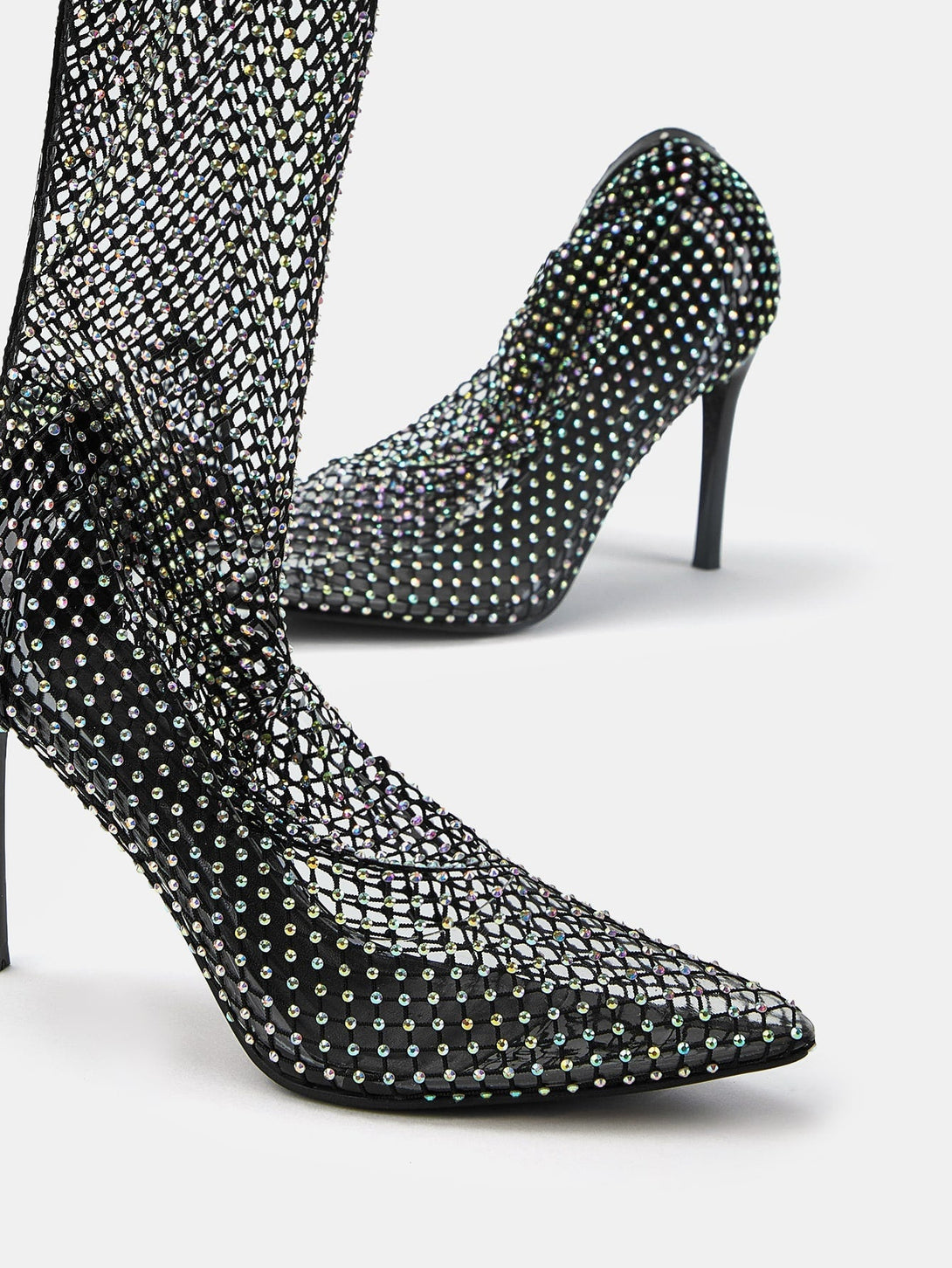 These Lantana Rhinestone Fishnet Boots are the perfect blend of sophistication and glamour. Made with genuine rhinestones for extra sparkle and a fishnet design. they provide a stylish and unique look. The pointed toe and high heel add an elegant finish to any look.