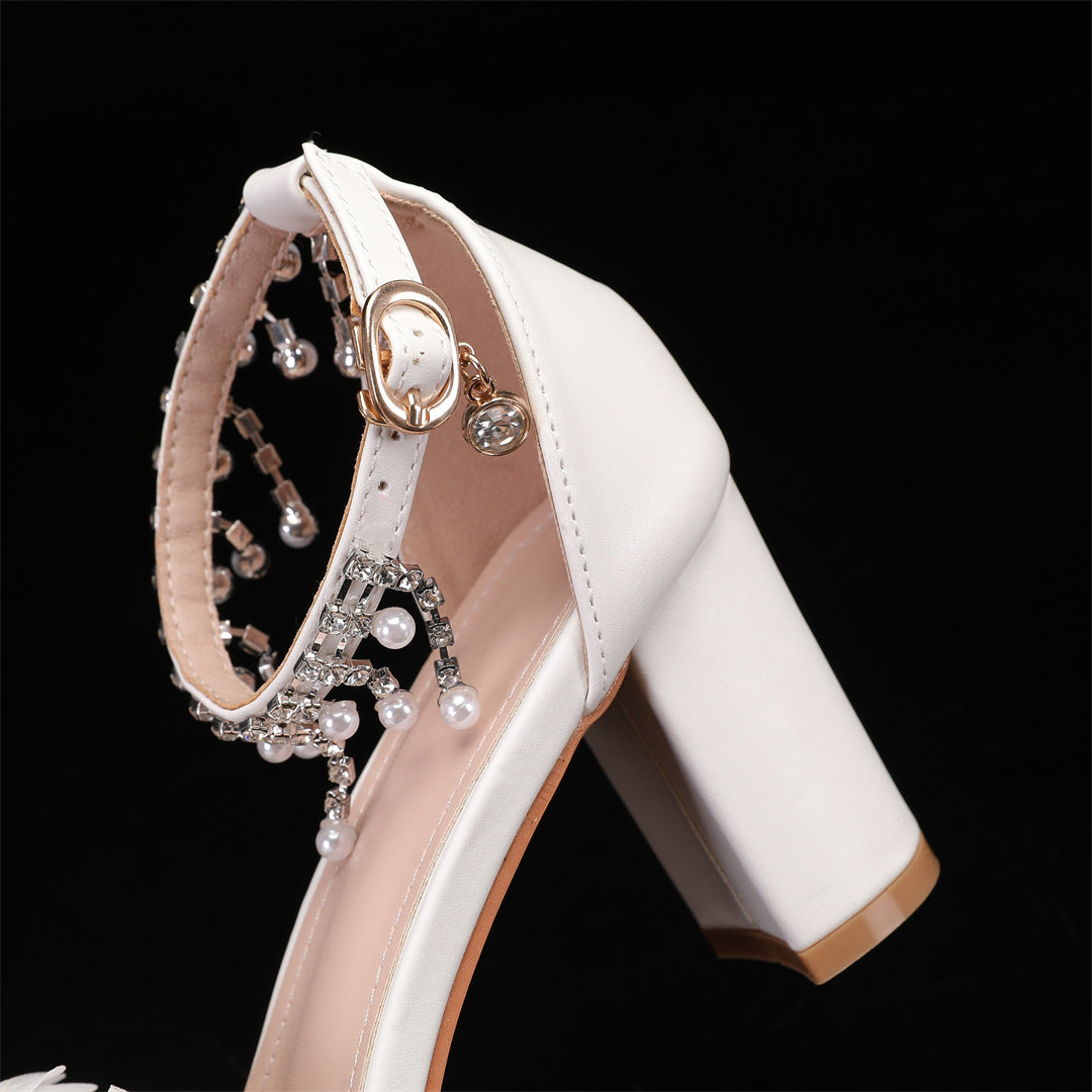 • Signature White Rose Toe – A delicate, hand-sewn rose symbolizing eternal love